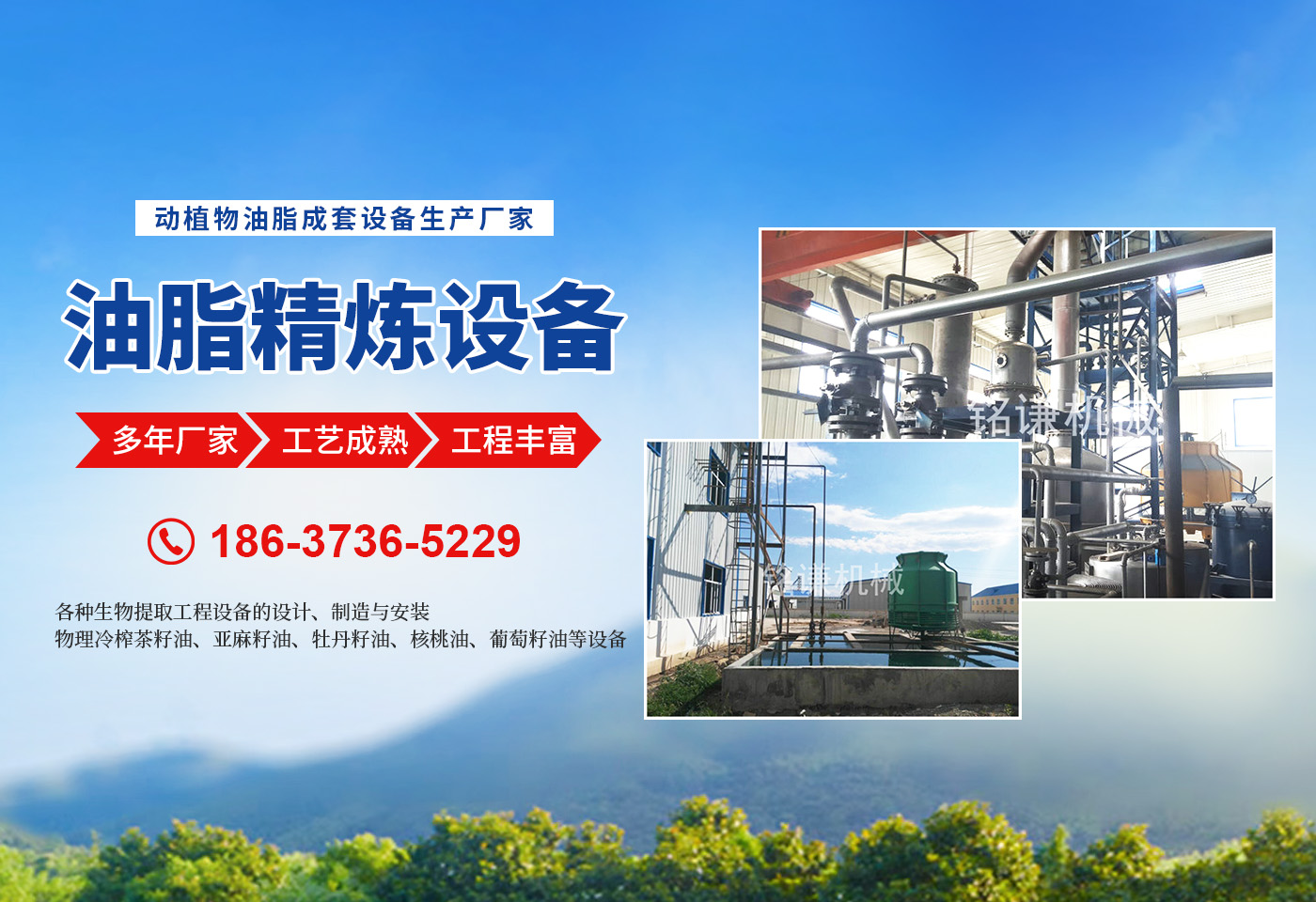 河南省銘謙機械設備有限公司,是集開發、科研、生產、安裝、調試、售后服務為一體的現代化企業?! ∥夜緭碛袃灹嫉募夹g設備,為動物油熬煉設備,無公害化處理設備,核桃油設備,茶籽油設備,牡丹籽油設備,牡丹籽油機械產品的品質提供了有力的技術和質量保證?! 镉土项A處理、榨油成套設備的設計、制造與安裝?! 镉土辖鲈O備的設計、制造與安裝?! 锇脒B續,連續(化學)物理精煉設備的設計、制造與安裝?! 锊枳延?,牡丹籽油,核桃油,亞麻籽油,葡萄籽油的設備的設計、制造與安裝。 ★各種生物提取工程設備的設計、制造與安裝?! 锔鞣N(豬、牛、羊、雞、鴨等)油廠熬制、精煉設備的設計、制造與安裝。 ★濃香型花生油、菜籽油、茶籽油、亞麻籽油、葵花籽油等設備的設計、制造與安裝。 ★物理冷榨茶籽油、亞麻籽油、牡丹籽油、核桃油、葡萄籽油等設備的設計、制造與安裝?! 锒诡惽謇碓O備、雜糧脫皮制粉設備、小麥制粉設備、大米加工流水線、小米加工流水線等設備的設計、制造與安裝?! 锔鞣N過濾設備,化工設備的設計與制造?! ∥覀円怨に嚭托抛u求發展,以質量和設備求生存。堅持“質量為上,用戶為上”的宗旨為客戶提供完善的技術咨詢和售后服務。始終把產品質量作為企業生存、發展的主要要務,竭誠歡迎新老用戶光臨指導。